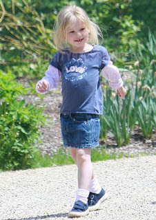 Jennifer Garner y Violet (3 años) saliendo del kindergarten en Boston.