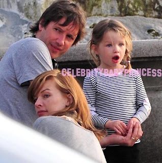 Milla Jovovich y Ever (2 1/2 años) en el set de "The Three Musketeers".